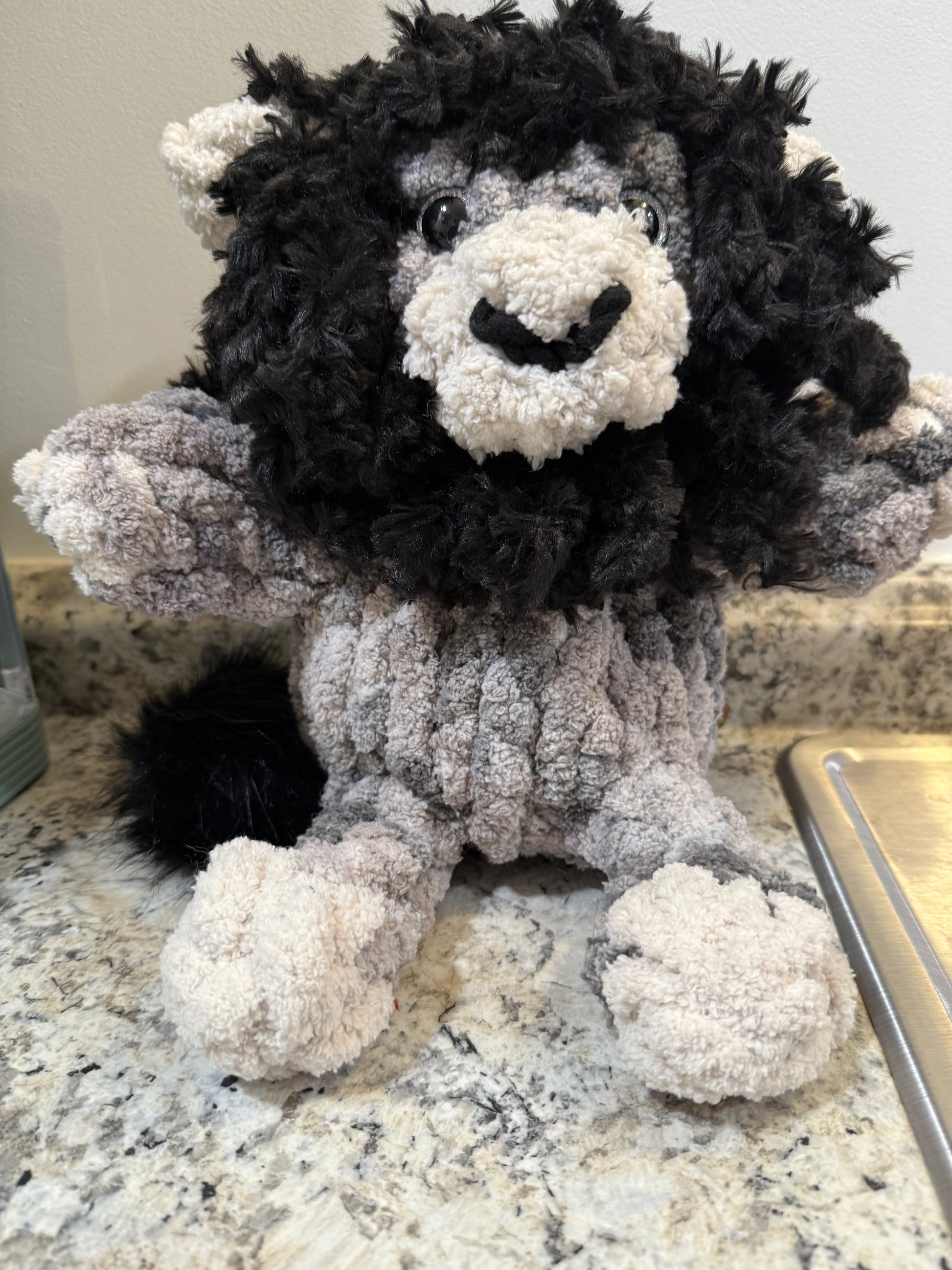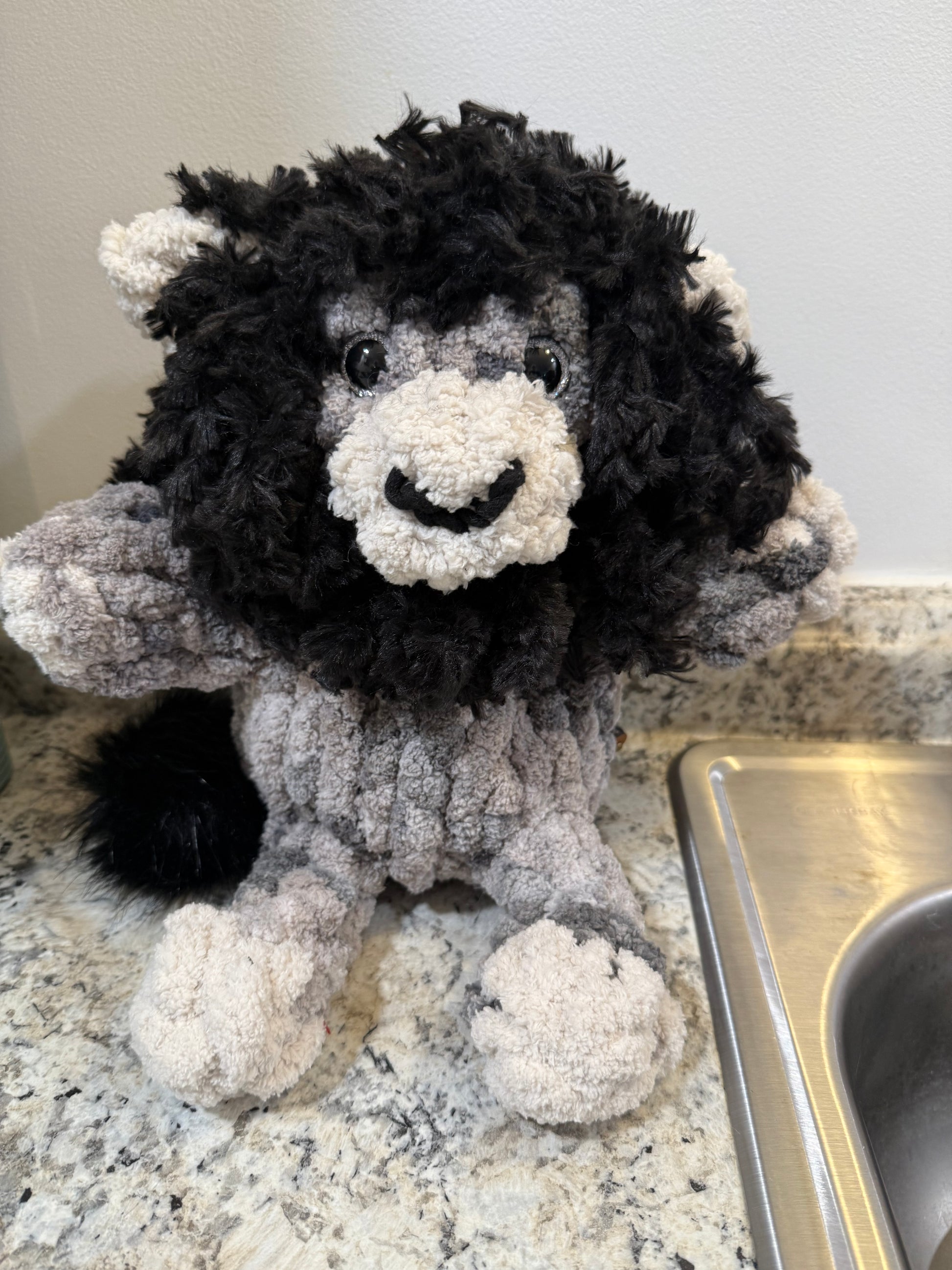 Made with Love by me! This lion stands about 11 inches tall. So stinking cute! See his mane blow with the wind!