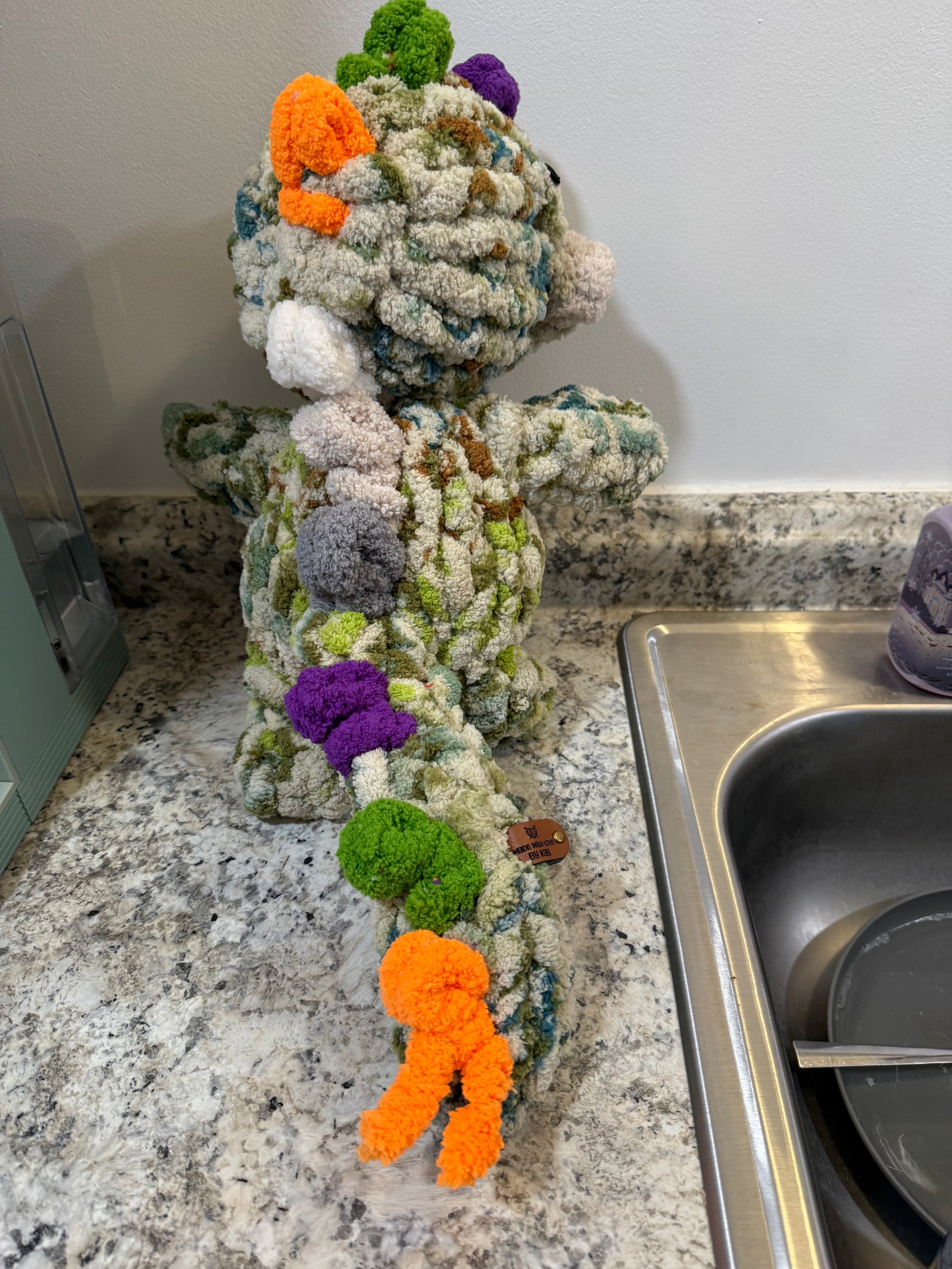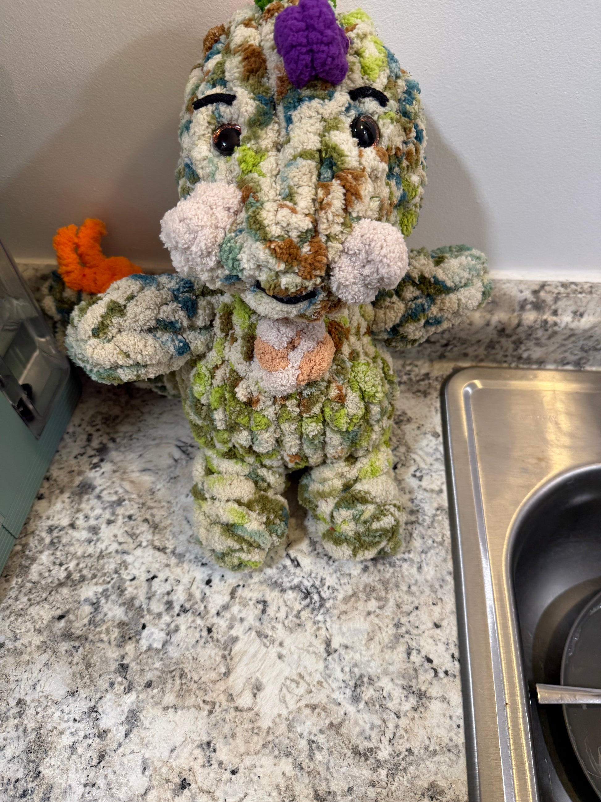 Made with 100% polyester and made with Love by Kay. 12 inches high sitting. Price includes the shipping.
