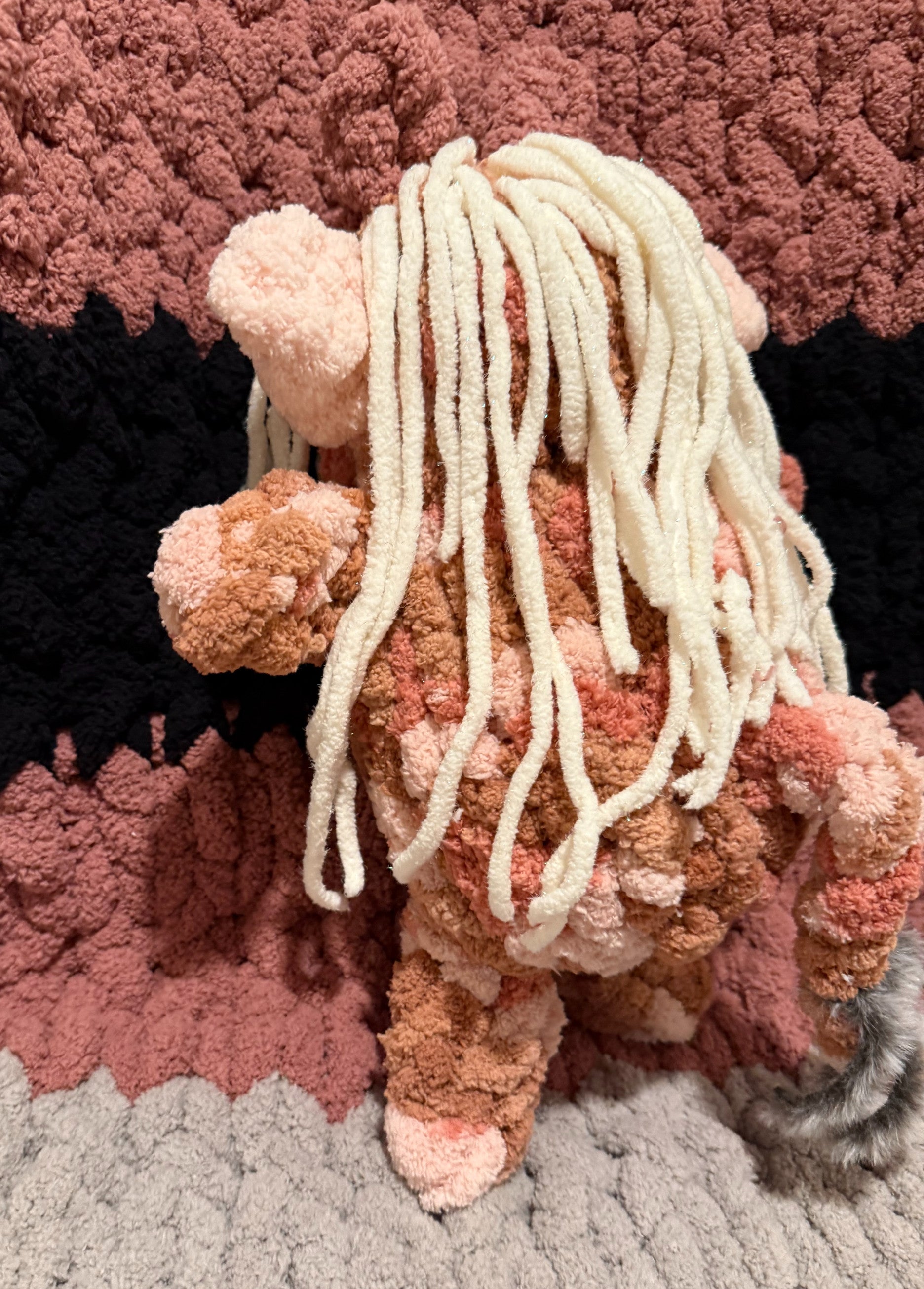 Just love her! Bright eyes and bushy tailed! Made with 100% polyester yarn!