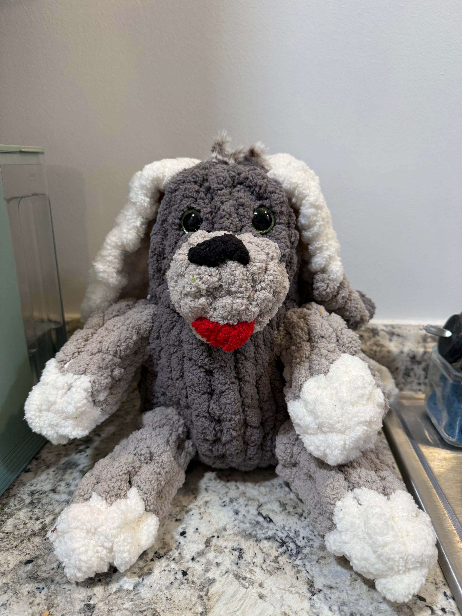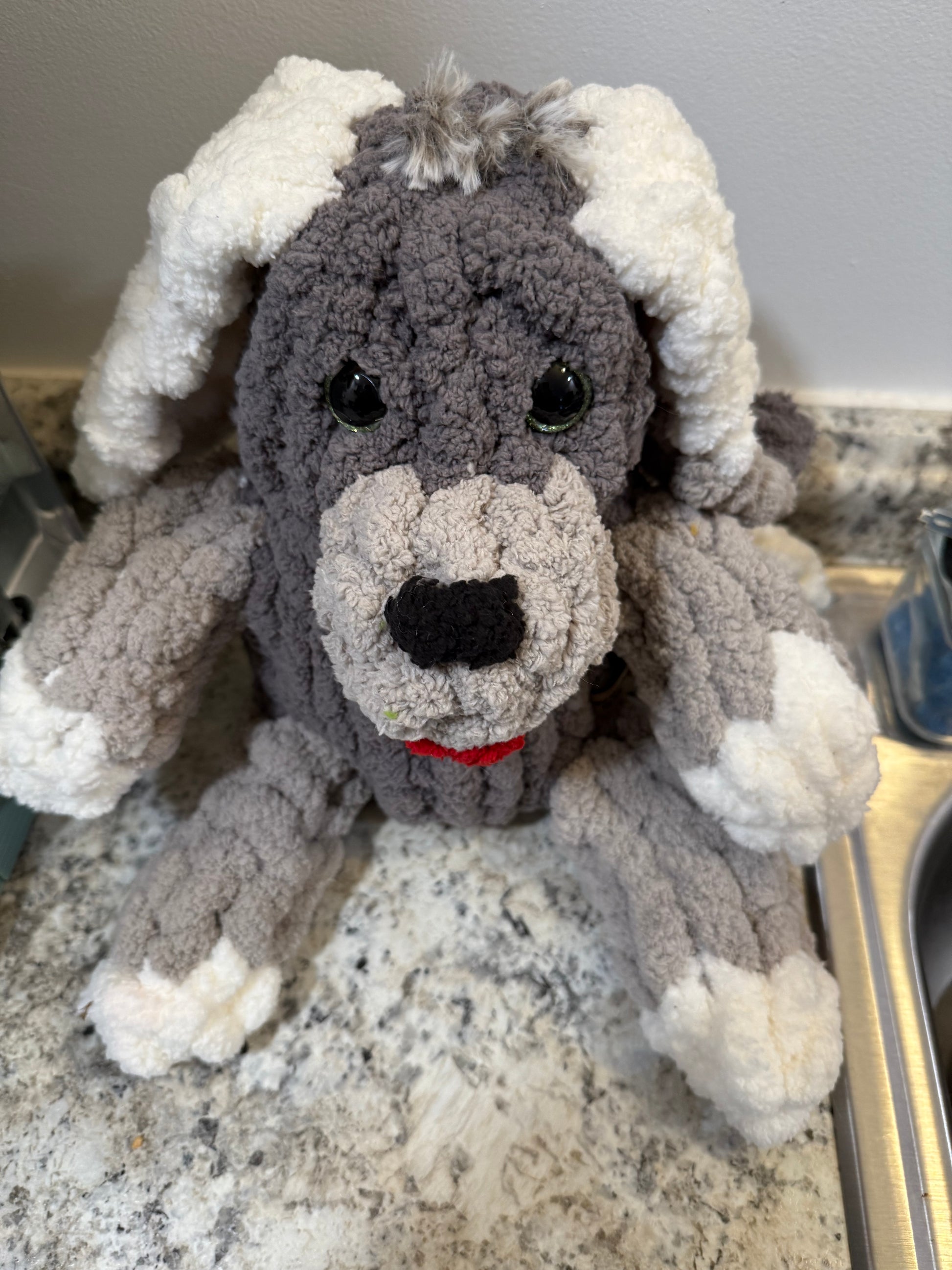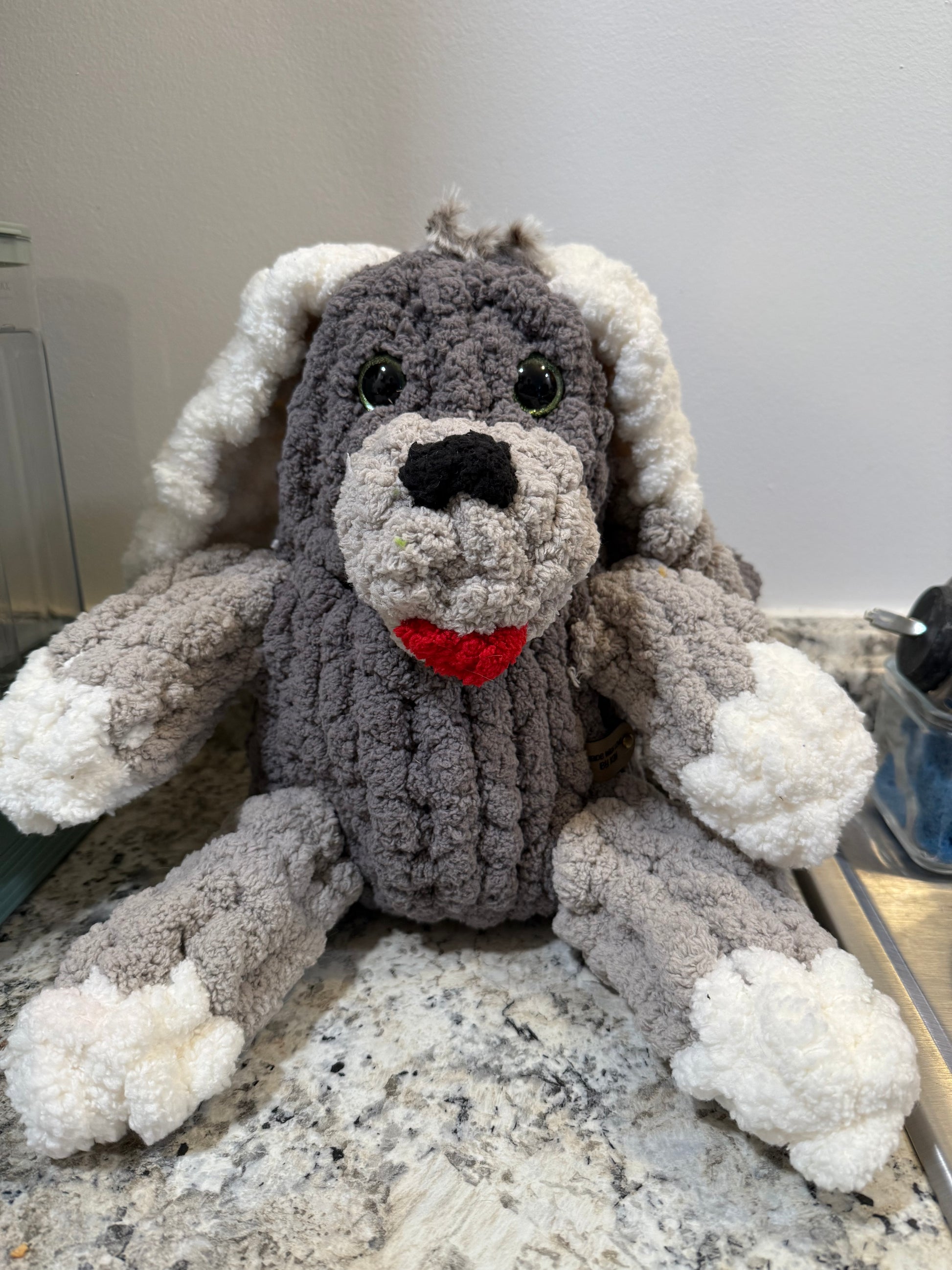 Made with 100 % polyester chunky yarn. Made with love by Kay.