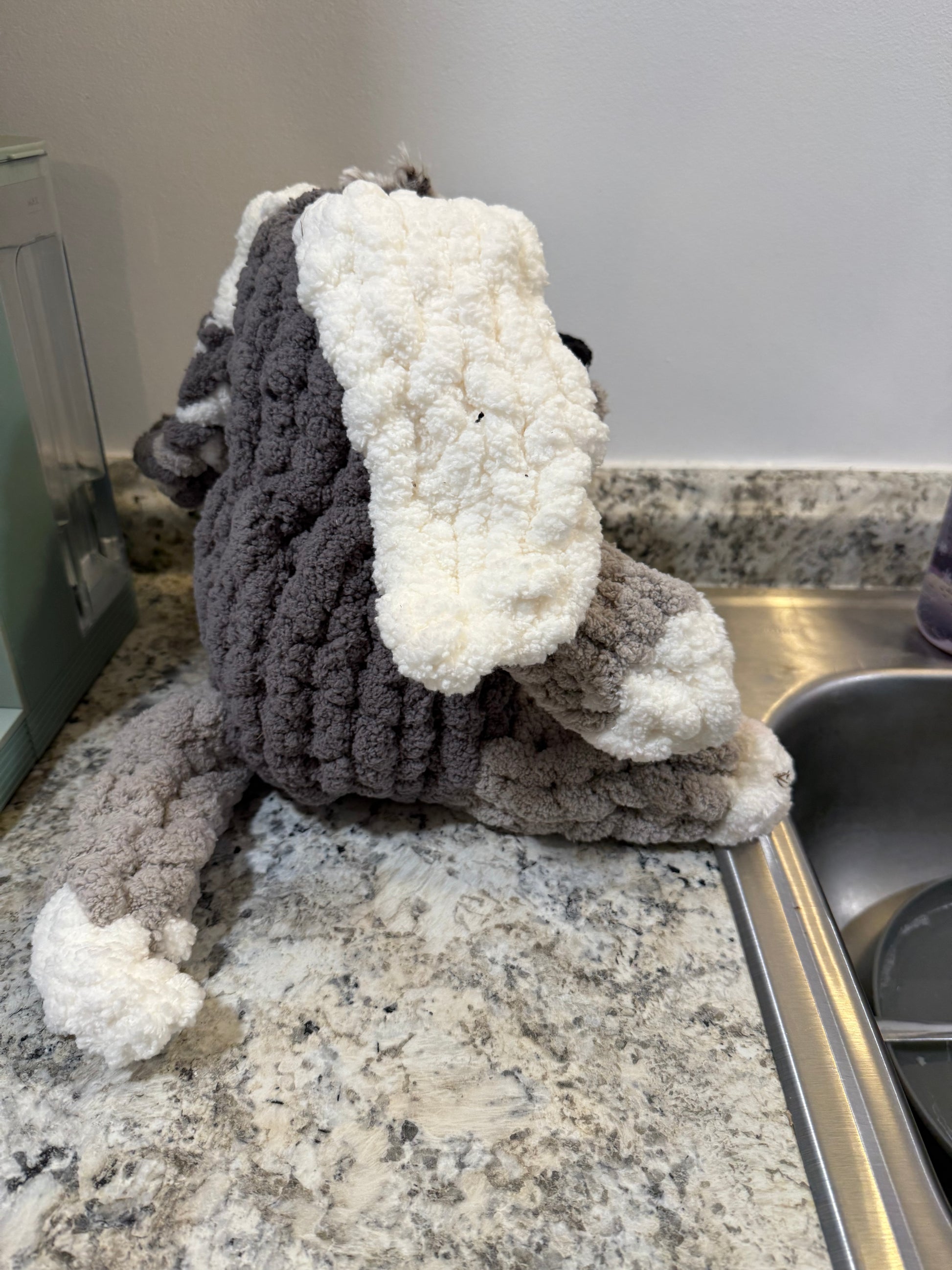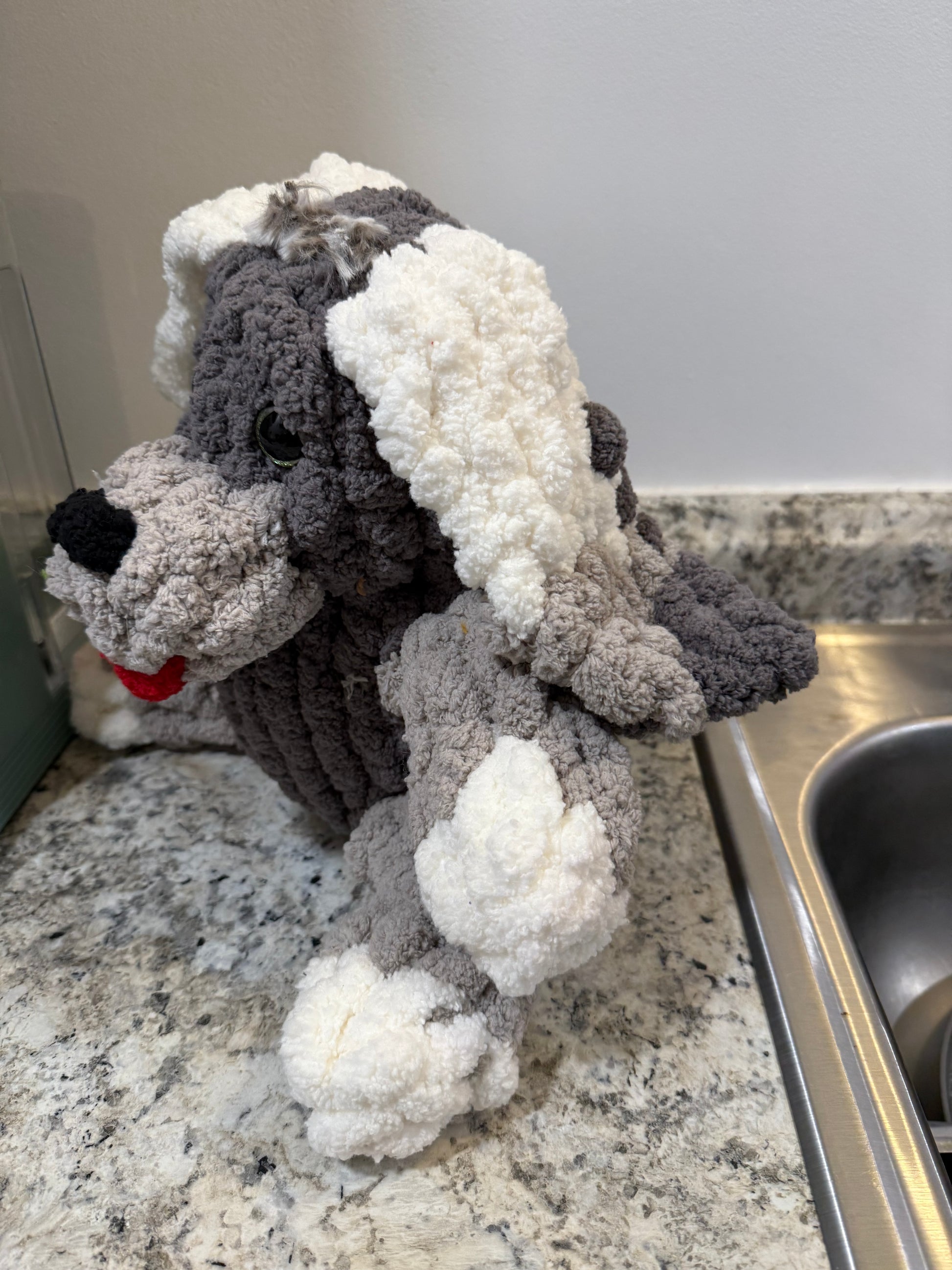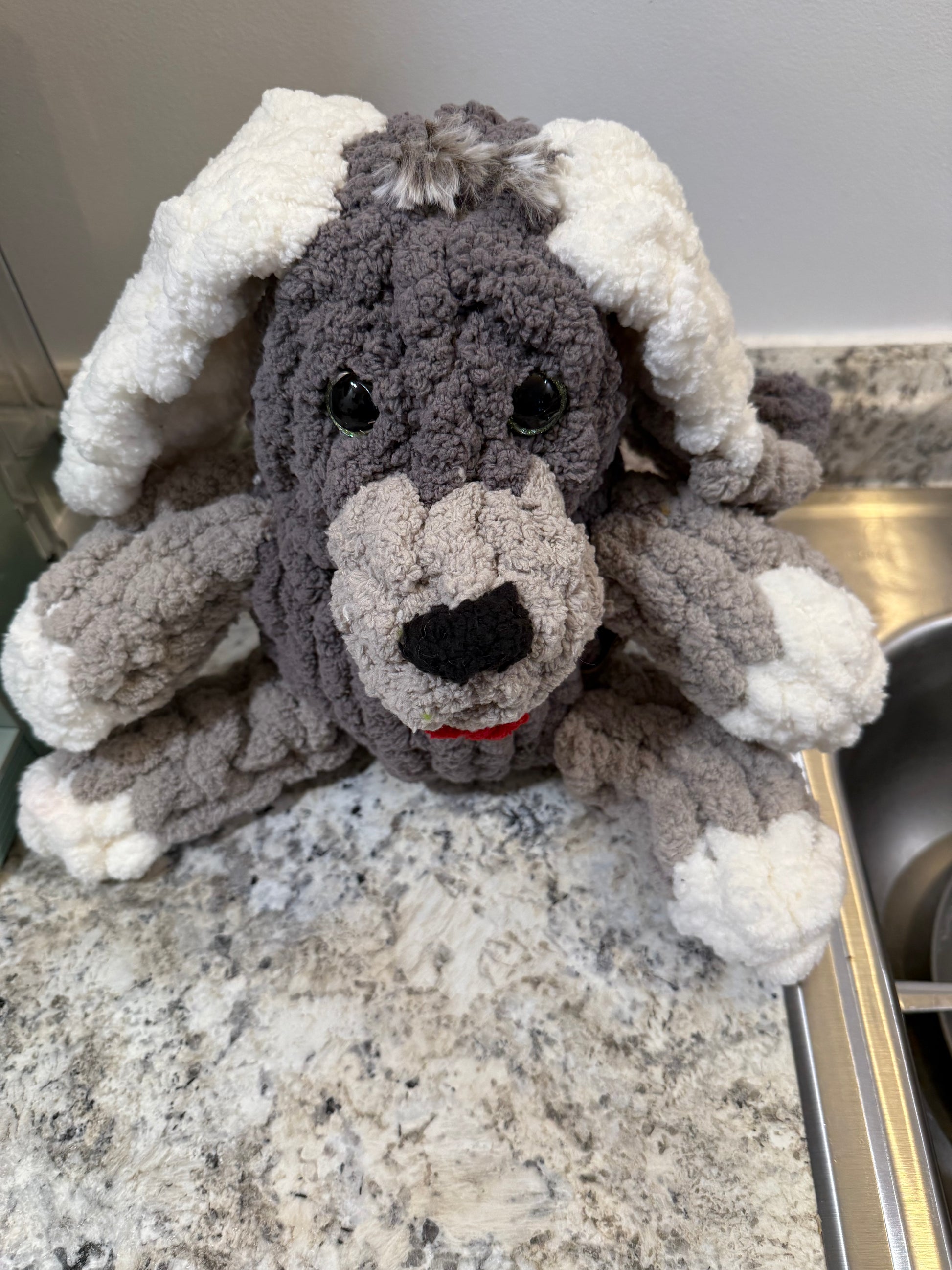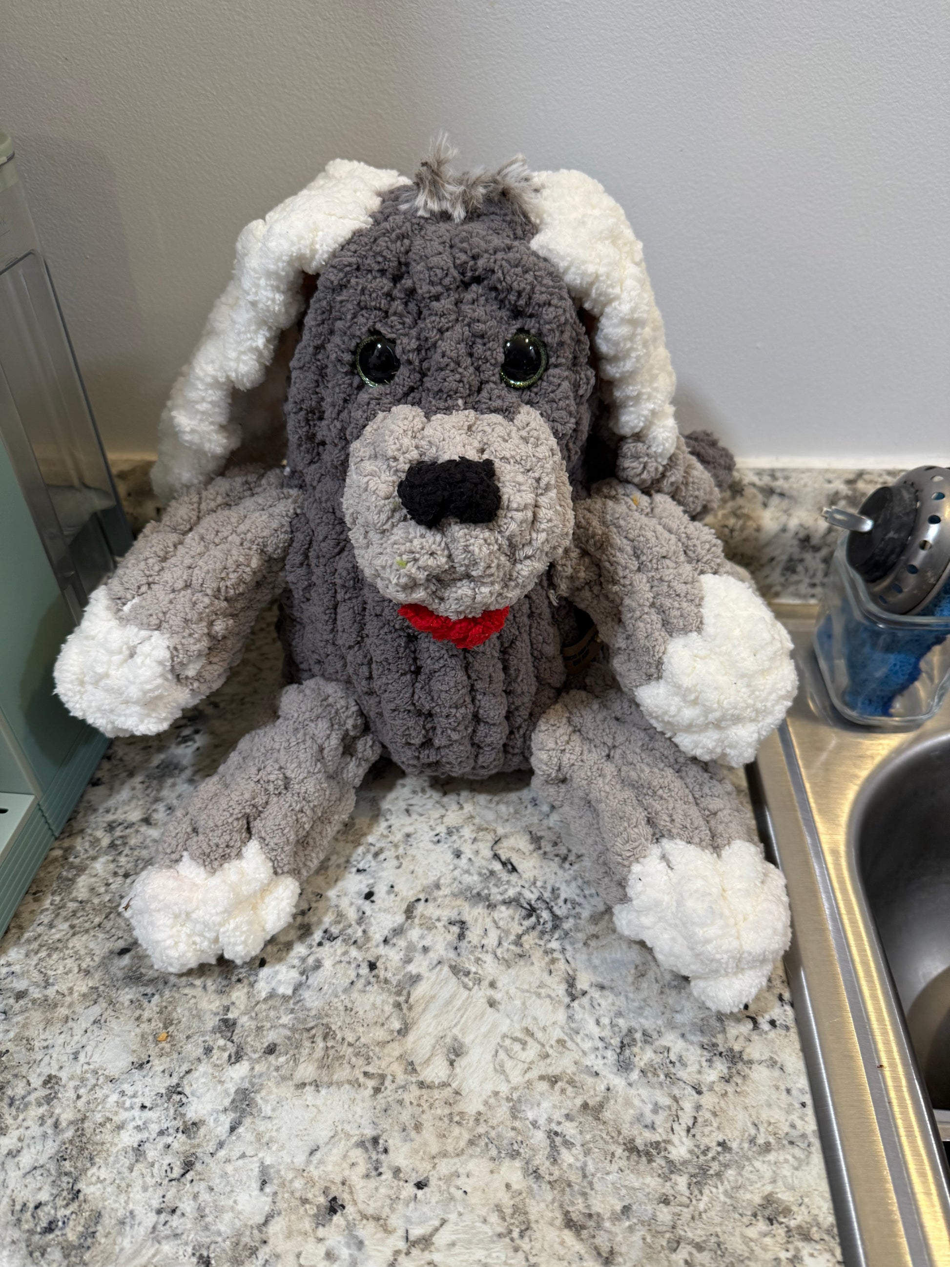 Made with 100 % polyester chunky yarn. Made with love by Kay.